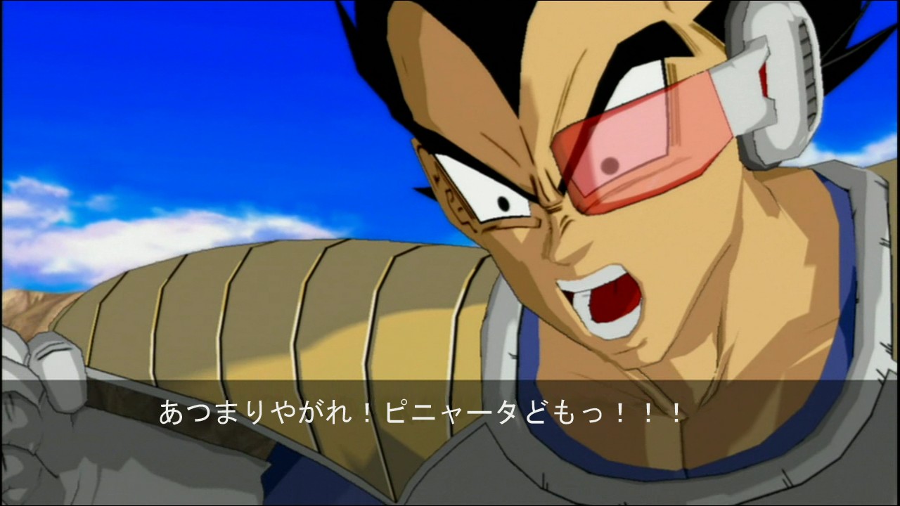 のリンクを貼っておきます。あと右の画像はベジータが叫んでる時のイメージです。ホントは「地球もろともこなごなに打ち砕いてくれるわーっ!!!」と言ってましたが、絵画ツールで1文字ずつ消してセリフを書き換えました。これだけの為にエライ手間掛かったけど、何かベジータに愛着が沸いて来たのでゲーム出たら買ってみるかな。(*'-')ノ