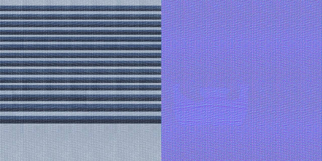 左半分がテクスチャーマップで、右半分が凹凸を表現するノーマルマップです。