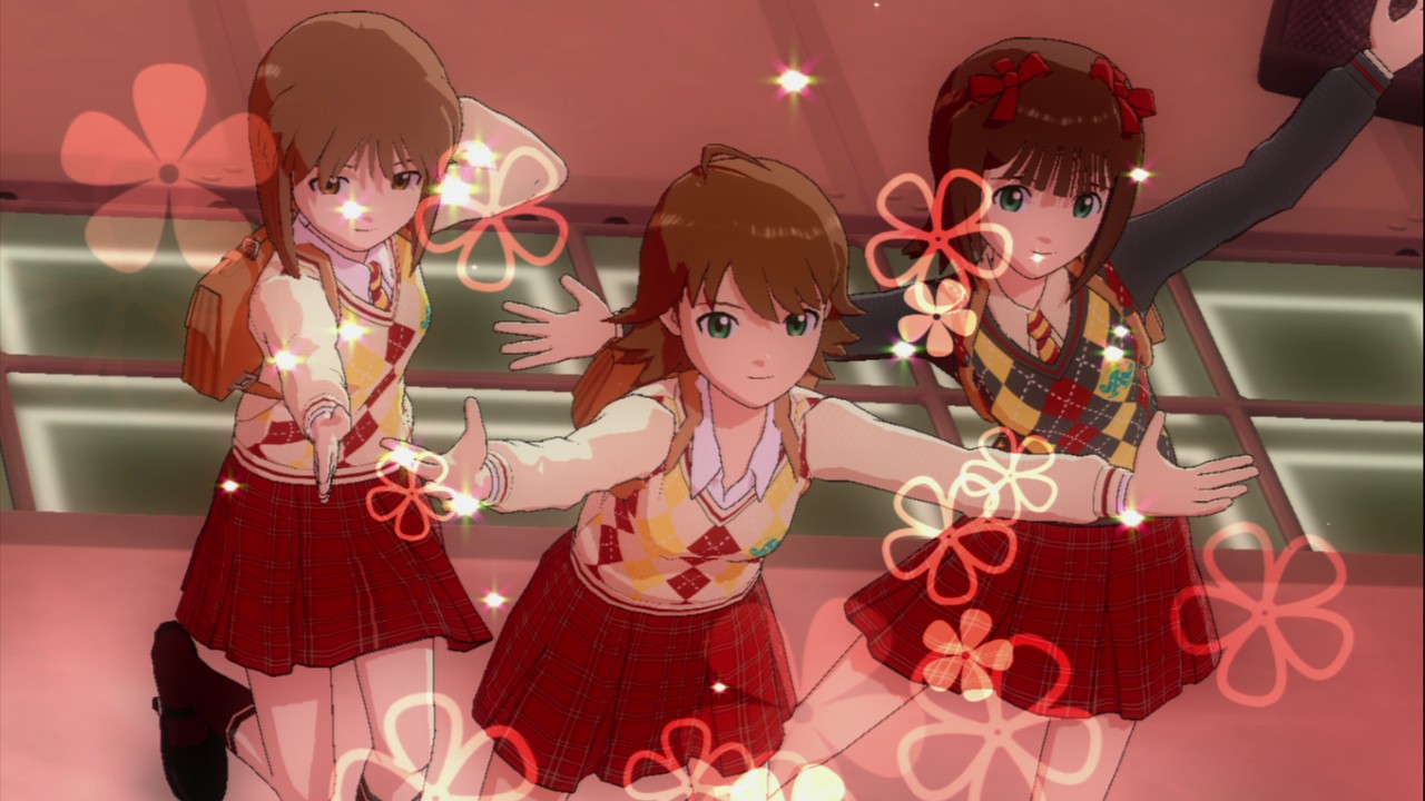 衣装ではマーチングバンドだか白いのがお気に入りなのですが、今回のブログ用に撮影したら前回と同じ見た目で困りました。なので“ 撮影の為 ”と自分に言い聞かせてカレッジオブエンジェルを買ってみました。DLCってこーゆー理由付けしてないと、ズルズル買ってしまいそうで危ないですねぇ。衣装やアイテム欄が空欄だらけなので、つい埋めたくなるのを突いた上手い商法ですね。せっかく買ったカレッジオブエンジェルですが、右の春香ちゃんだけなんでセーターが黒いんだ。しかも服とお揃いの帽子も買ったのに、頭に付いてるリボンが帽子の表面に貫通してるので撮影に使えませんでした。有料なんだからちゃんと対処して欲しいですね。あとこのゲーム唯一の不満点は、演出した曲が1個しかセーブ出来ない所ですね。せめて3個くらいセーブ出来て、1個だけLiveにアップロードするってシステムなら良かったのに。(*'-')ノ