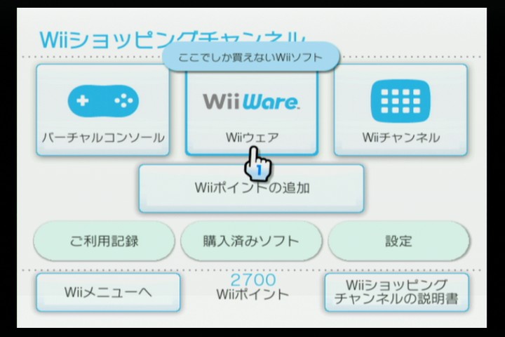 がスタートしました。Xbox風に言うと、マーケットプレイスで販売されるアーケードって感じです。Wiiウェアのゲームはパッケージ販売はなく、ここでしか買えないみたいです。FFもどきが気になっていたので買ってみました。