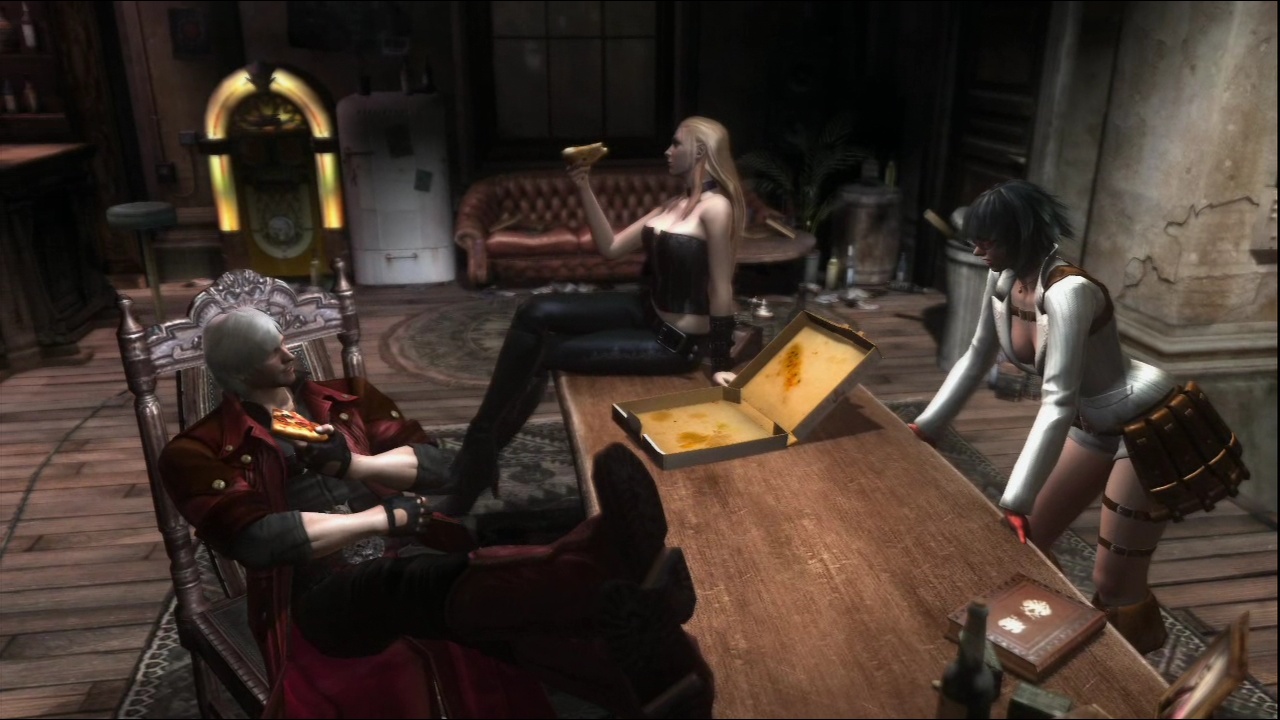 最近洋ゲーとかソレっぽい絵のゲームばかりやってるので、久々の日本のゲームなんで物凄くキレイに見えますね。(洋ゲーもキレイですが) 特にキャラクターが好みの画ズラなのでより気に入っています。写真撮ってて気付いたのですが、凄い細かいところまでリアルに描かれているのに驚きました。右下のネロの指とかリングが本物ぽいし、左下のピザの空き箱まで無駄にリアルですね。箱の内側にピザの油分が染み込んだ表現までされてますよ。スタッフのこだわりを感じますね。(*'-')ノ
