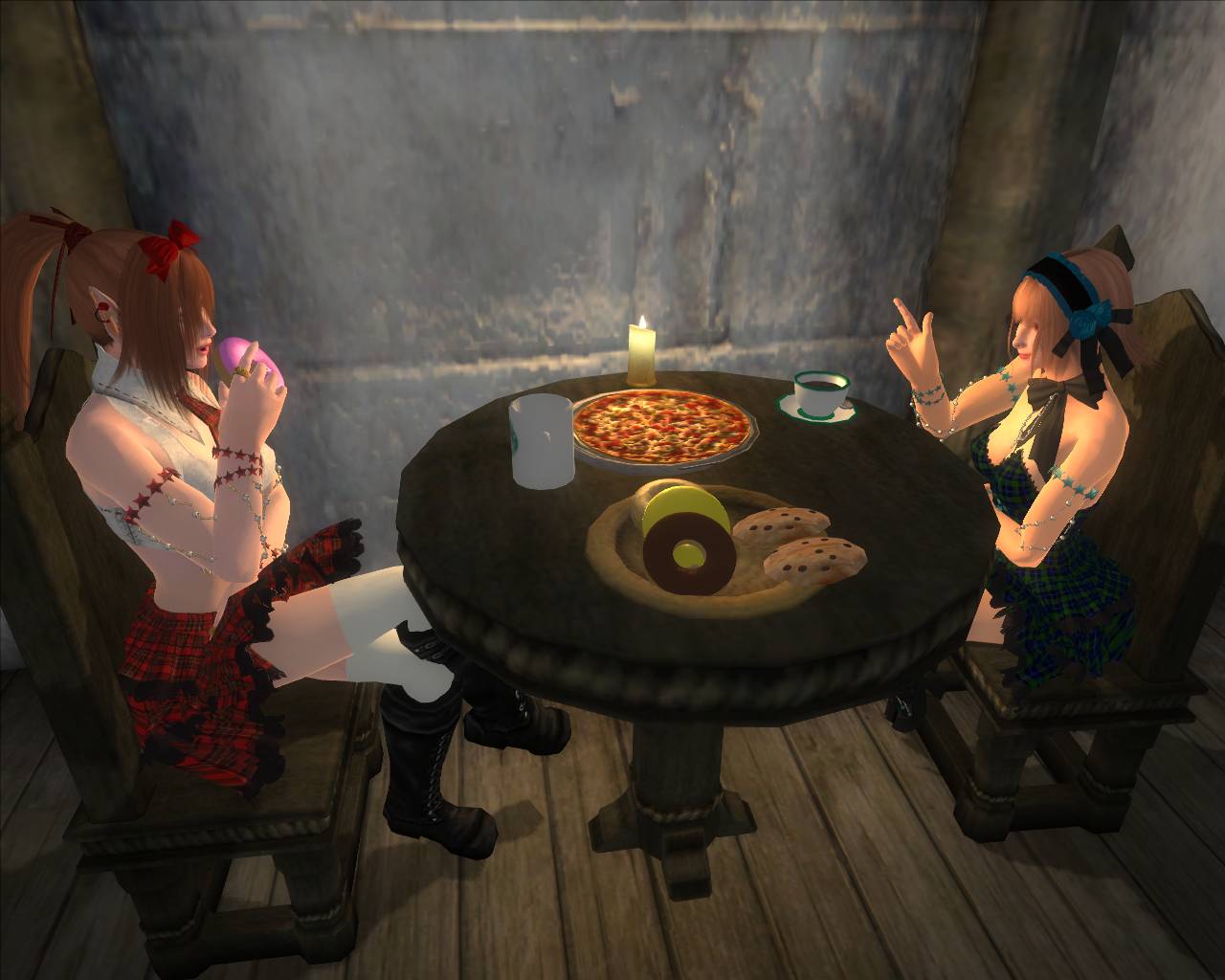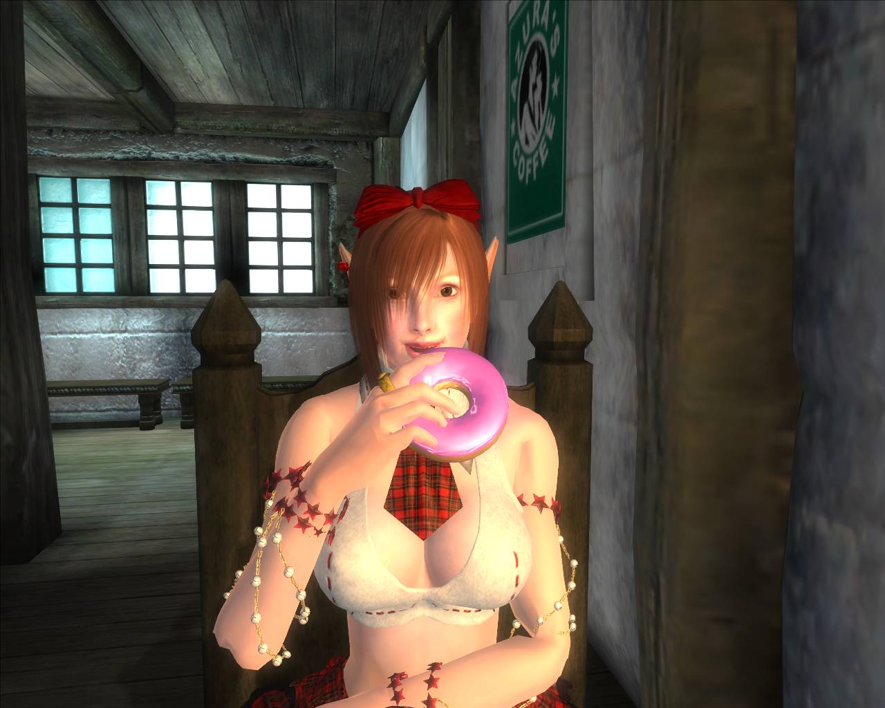 元はチョコを座って食べるポーズですが、座標をコピーしたドーナツのnif に差し替えました。