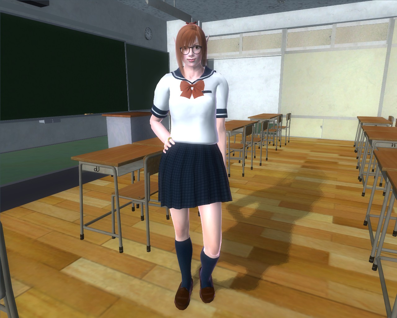 漸くセーラー服をGETしたので、教室で着てみました。メガネもかけて、勉強出来るコ風です。