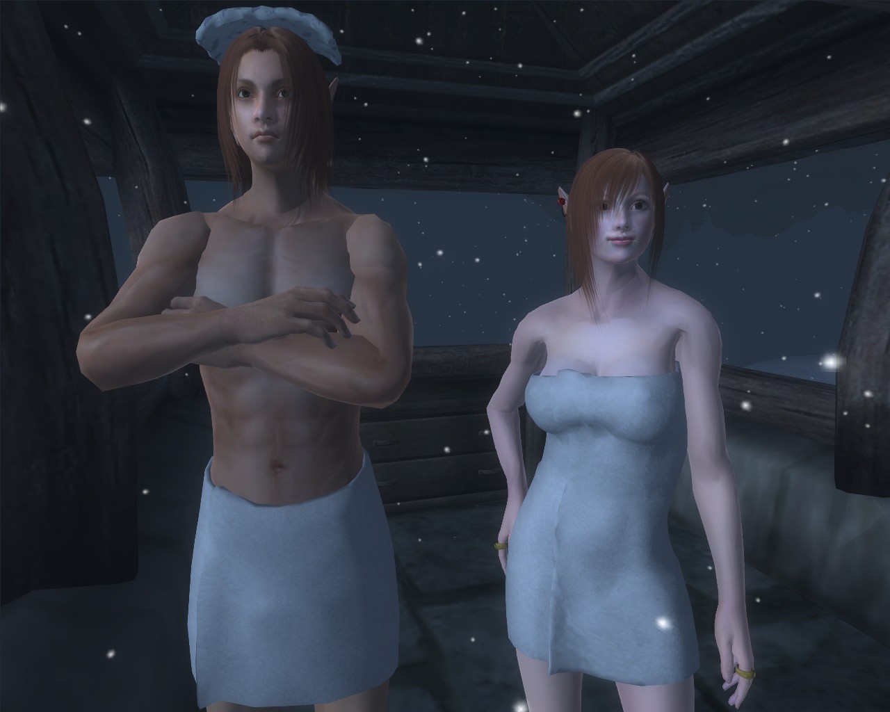 このチン騒動は、ここがMODとして追加された場所なので、家に帰るとか正常に動かなかったんだと思います。逆にNPCを大浴場に入れたくても、何か見えない結界があるみたいで入って来ませんでした。アニキの不可解な動きのおかげで、この温泉取材がより楽しめました。(*'-')ノ