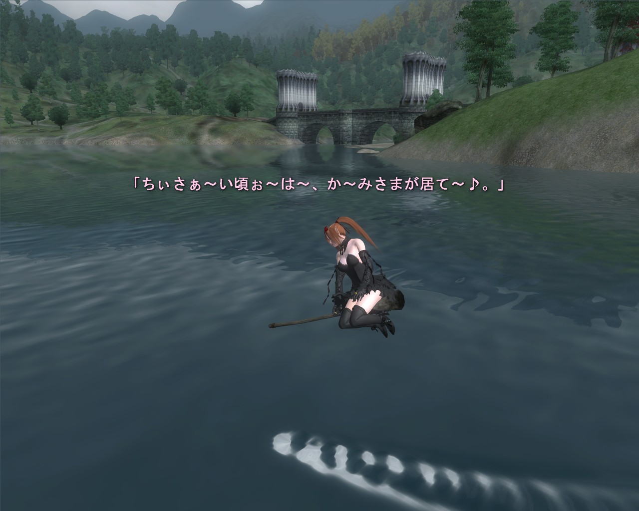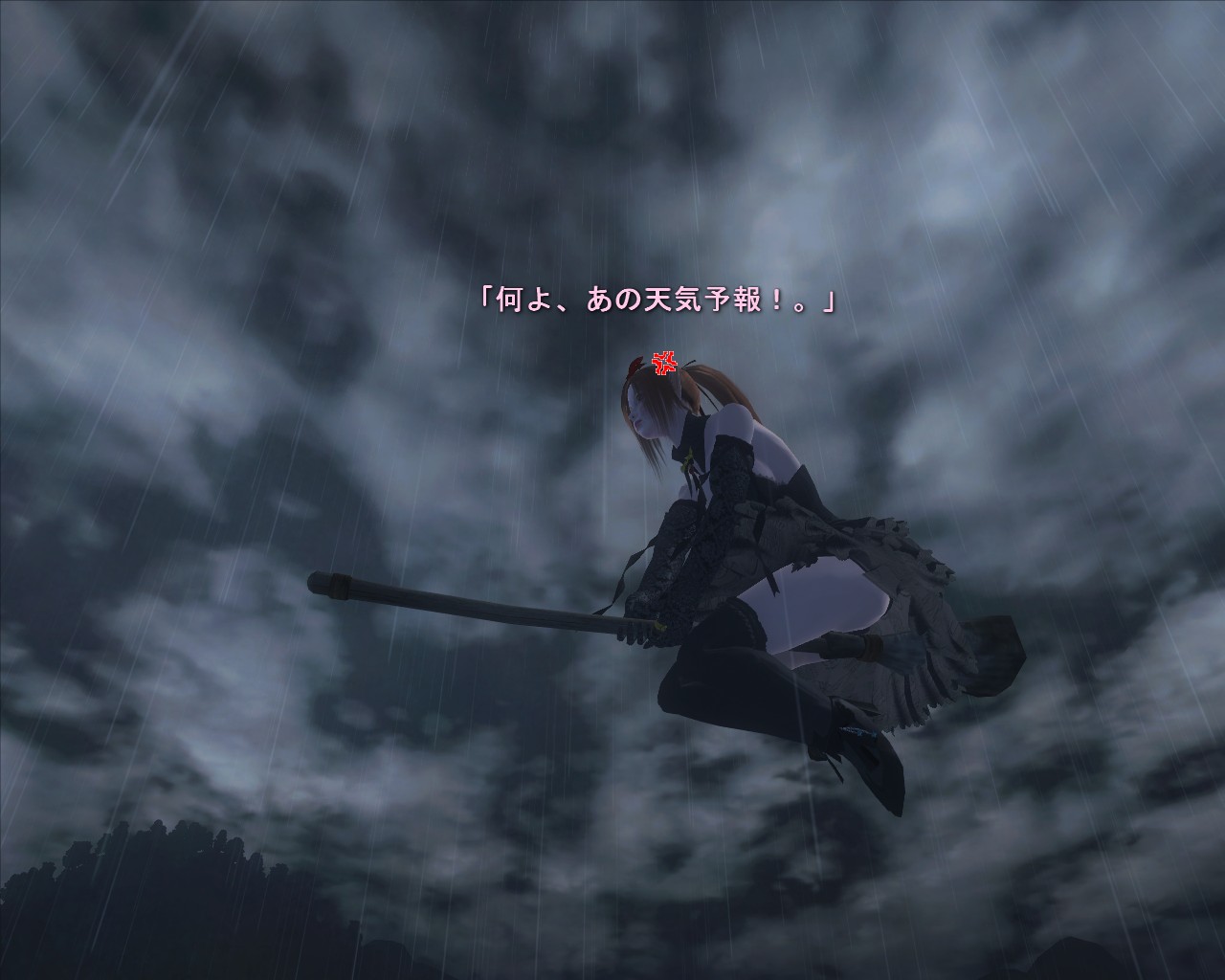 ホウキの操作に慣れたのか、いつの間にか余裕の横乗りスタイルになっています。