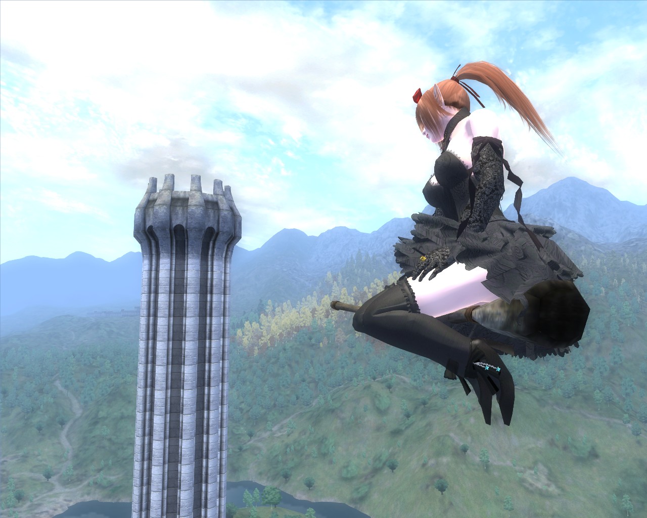 このオブリビオンのシンボルとも言える帝都タワーって、当然ながらハリボテです。頂上に立とうと思い、ホウキから降りたらそのまま落下して死んじゃいましたよ。このホウキは空中でホウキ降りると、舞空術のように浮いてるんですが、たまに落下して死ぬので注意しましょう。(*'-')ノ