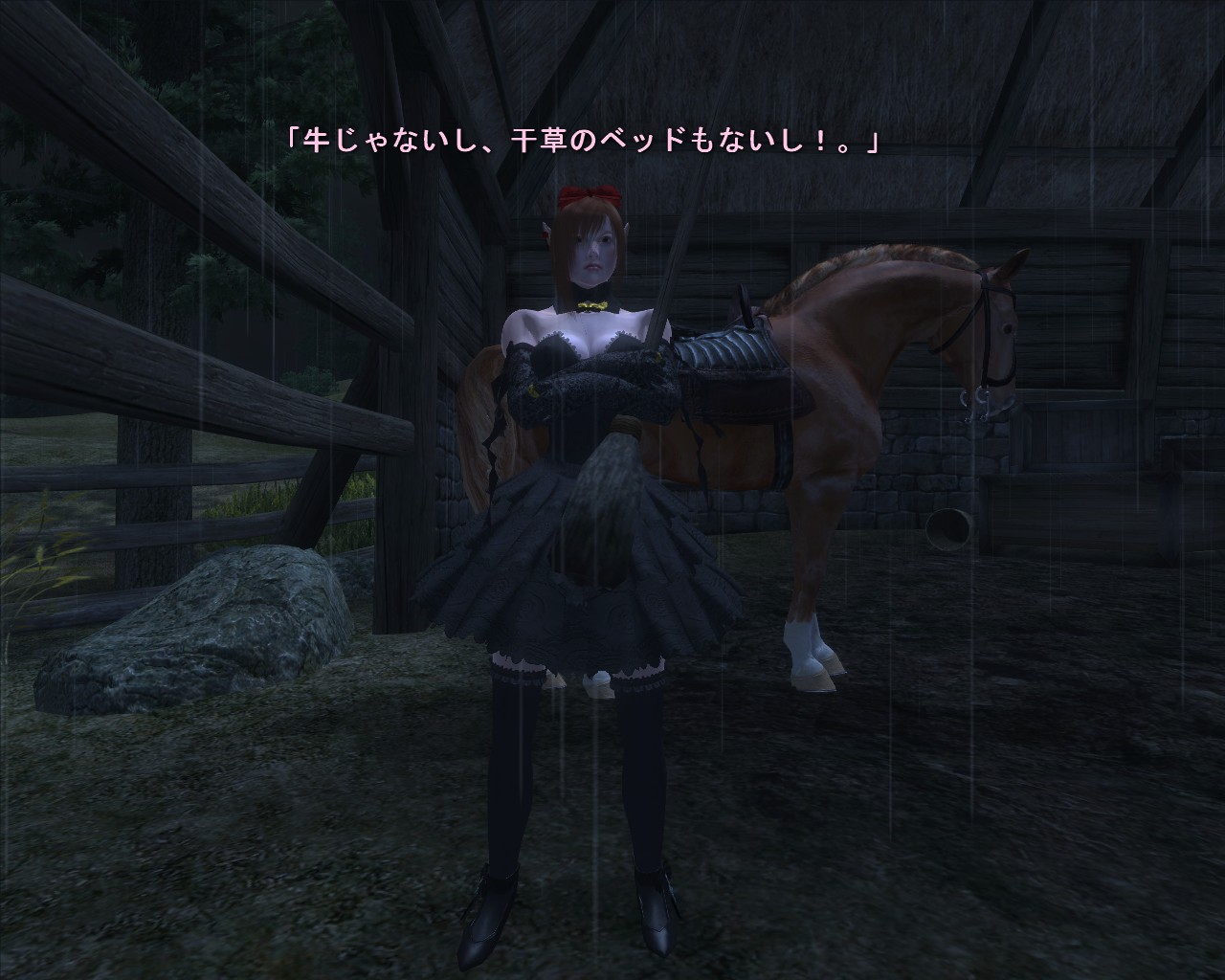 いくら探しても列車はあるはずもないので、仕方なく馬小屋で雨宿りする事にしました。